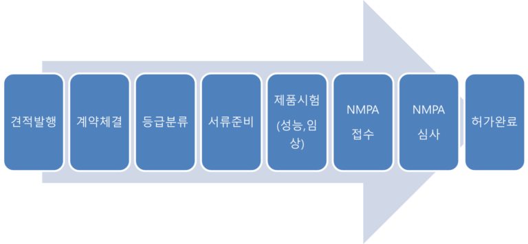 의료기기 제품이 중국에서 판매되기 위해서는 사전에 중국국가약품감독관리국(NMPA)의승인을 받아야 한다.