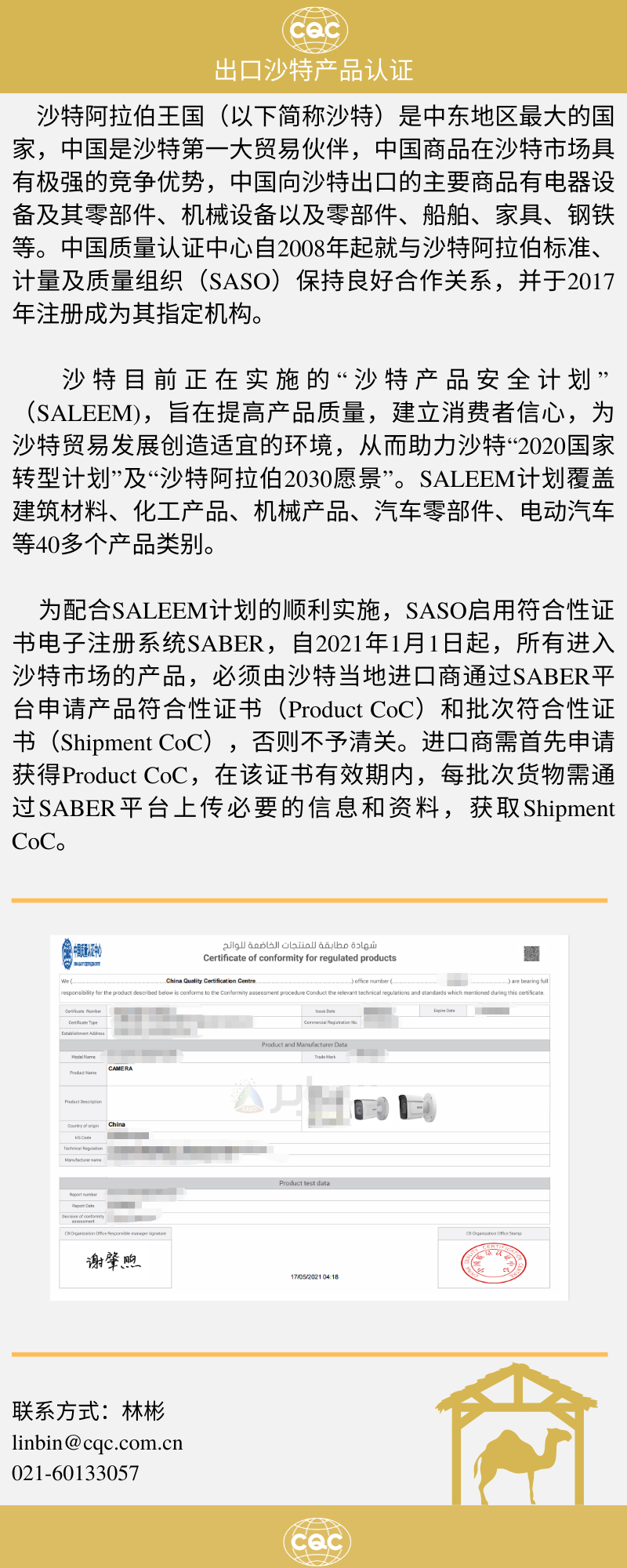 出口沙特产品认证